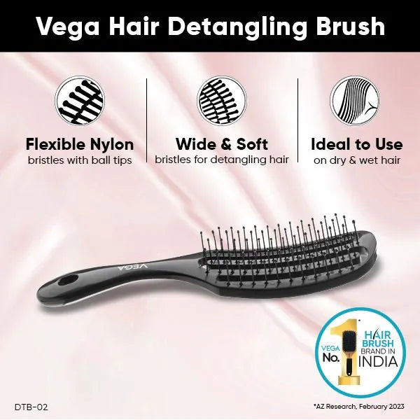 Style your hair every day with Vega Hair Brushes. Our hair brushes range includes paddle, cushion, flat, round and compact hair brushes designed to groom, shape and detangle all hair lengths and textures. The ball tipped bristles gently massage the scalp and reduce snags and tangles to give you silky smooth hair or bouncy waves. Try Vega today for a new look every day.Country of Origin: ChinaImporter Details: Vega Industries Pvt. LimitedImporter Address:B-43, Sector-80, Phase-II, Noida - 201 305, U.P., INDIA