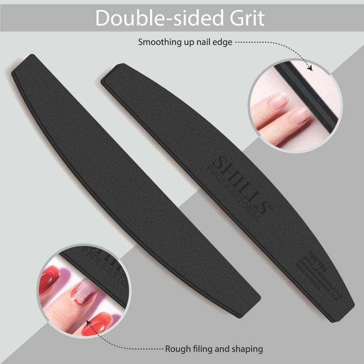 Shills Professional Half-Moon-Shaped Filer Grid - 100/180, which is ideal for filing nail tips and extensions. This filer is not only comfortable to grip but also incredibly easy to use. It is made of high-quality sandpaper, which makes it very wear-resistant and durable. Moreover, it is washable and practical. Simply rinse it with water after use, and it's ready to go again. This portable and practical filer is definitely a must-have!