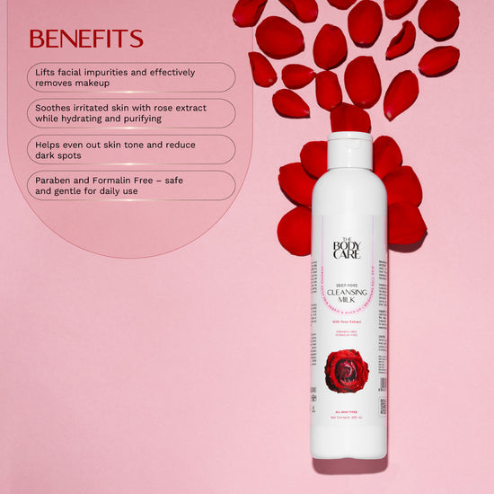 बॉडी केयर डीप पोर्स क्लींजिंग मिल्क विद रोज़ एक्सट्रेक्ट 300 एमएल