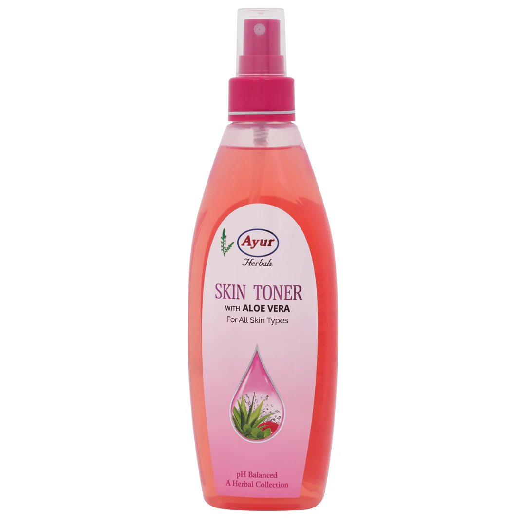 Ayur Herbals Skin Toner with Aloe Vera is enriched with the goodness of Aloe Vera, Rose Water and Mint (Mentha Sativa) that safeguards the skin against common skin impurities such as acne, blemishes, and redness. This toner is an alcohol-free liquid that offers skin hydration and restores balance. It removes dead skin cells off the skin, minimizes pore size and provides a natural glow maintaining the pH level as well. It fights skin infections such as allergies and the harsh effects of sun rays.