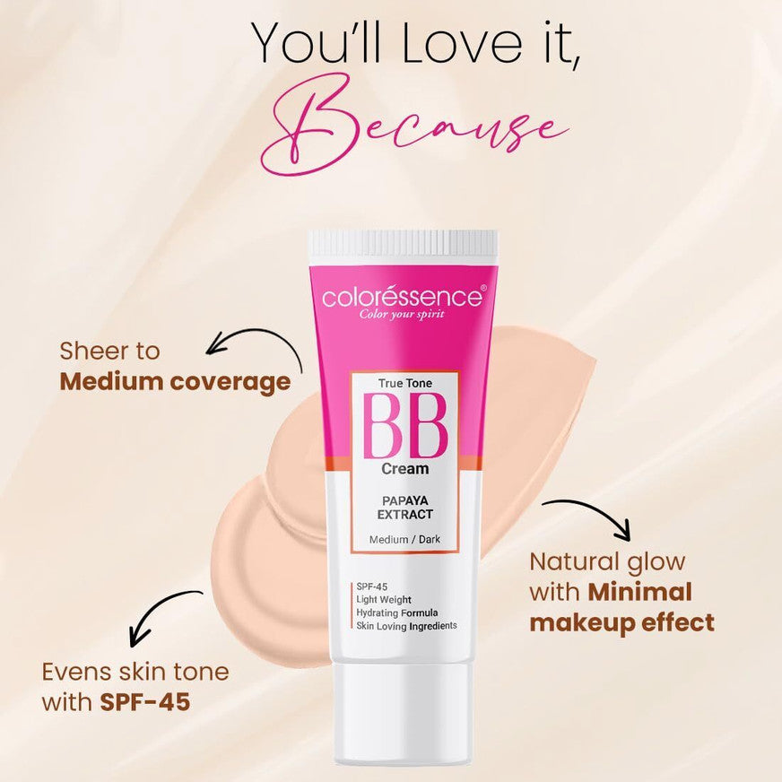 Curated with SPF 45, Grapeseed & Papaya Extracts, Coloressence True Tone BB Cream is a lifesaver for women on the run who could use a few more minutes before heading out. This cream serves as your go-to micro skin stylist, helping you achieve the ideal skincare and cosmetics look for any occasion. Your personal stylist will assist you in getting the perfect look for any occasion, whether it be work, a party, or just a casual evening with friends. It's time to switch to a more straightforward skincare routine without compromising. The bb cream adds a bit of makeup while hydrating, brightening, and refreshing your skin. This BB Cream improves your skin tone, minimizes pigmentation, and eliminates dark spots while providing excellent coverage. With each use, its safe and efficient formulation provides a noticeable improvement.