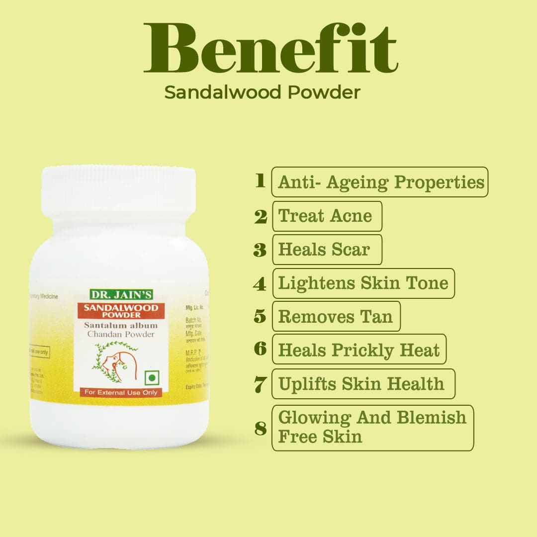 - डॉ. जैन का चंदन पाउडर त्वचा के स्वास्थ्य को बेहतर बनाने में मदद करता है