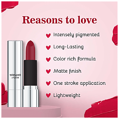 हमारी टोमैटो बाय फ्लिका मैट लिपस्टिक रेंज के साथ जीवन में अपने तरीके से पाउट बनाएं, हर अवसर के लिए एक शेड! 25 पावर-पैक शेड्स के साथ लॉक और लोडेड, एक सदाबहार समृद्ध पिगमेंट और ताजा, लंबे समय तक चलने वाला फ़ॉर्मूला जो आपके होठों पर 8 घंटे तक टिका रहता है। आपको इन वॉटर-रेज़िस्टेंट, हल्के और चिकने शेड्स के बारे में किसी भी चीज़ के बारे में चिंता करने की ज़रूरत नहीं है, सिवाय इसके कि आप कौन सा चुनने जा रहे हैं - क्योंकि यह एक कठिन विकल्प होने वाला है।
