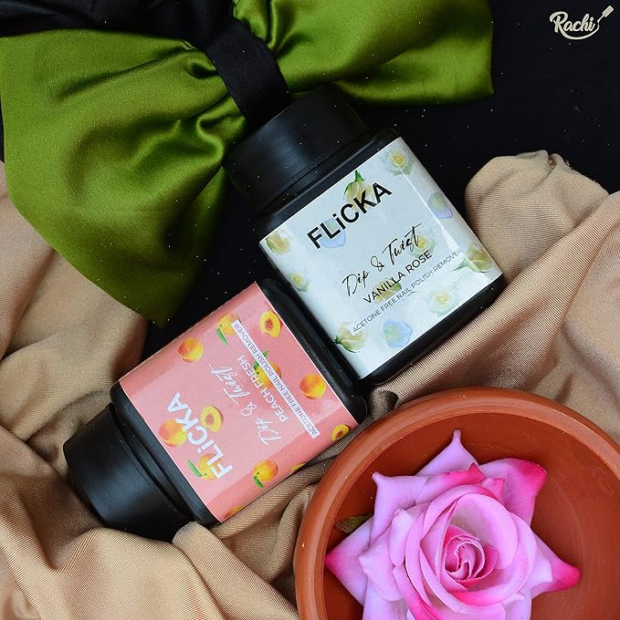 डिप एंड ट्विस्ट इनेमल रिमूवर पेश है FLiCKA डिप एंड ट्विस्ट इनेमल रिमूवर, बिना किसी झंझट के यात्रा के लिए अनुकूल नेल पेंट रिमूवर। अब आपको अपने नेल पेंट को हटाने के लिए कॉटन बॉल या मेकअप रिमूवर पैड की तलाश करने की ज़रूरत नहीं है। इसमें एसीटोन और पैराबेन-मुक्त फ़ॉर्मूला है, इसलिए आपको नाखून के नष्ट होने, सूखने, टूटने या किसी भी तरह के नुकसान के बारे में चिंता करने की ज़रूरत नहीं है। FLiCKA डिप एंड ट्विस्ट इनेमल रिमूवर विटामिन ई और अन्य प्राकृतिक तेलों से युक्त है, इसलिए यह सिर्फ़ आप और आपके हाइड्रेटेड, पोषित और नमीयुक्त नाखून हैं। डिप एंड ट्विस्ट आपके नाखूनों को नुकसान पहुँचाए बिना आसानी से नेल पेंट हटाता है। FLiCKA डिप एंड ट्विस्ट इनेमल रिमूवर पाँच सुगंधों में उपलब्ध है, यह आपके नाखूनों को आपकी मनचाही खुशबू देगा।