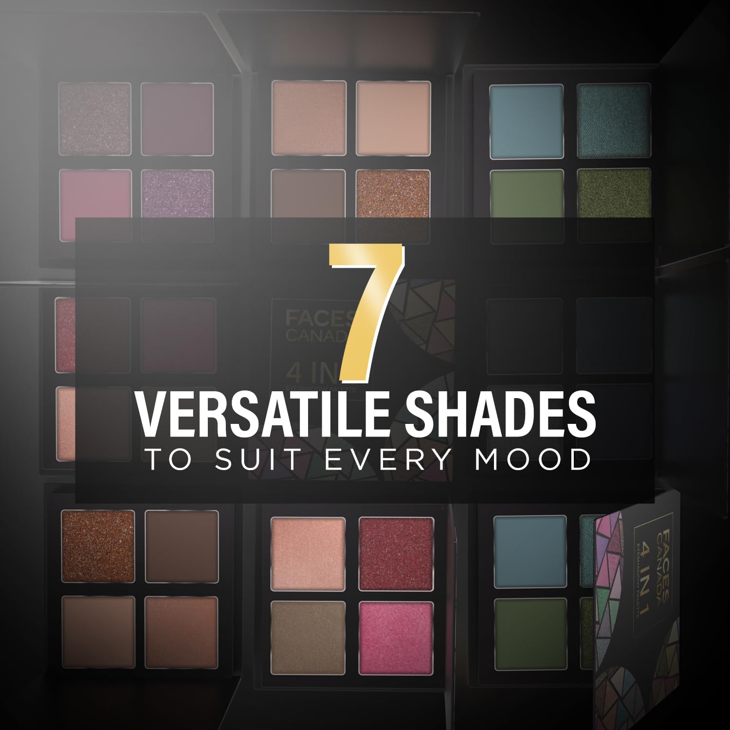 - बहुमुखी शेड्स: फेसेस कनाडा 4 इन 1 आईशैडो पैलेट 7 रोमांचक शेड्स में आता है। काम के लिए उपयुक्त - रमणीय न्यूड से लेकर पार्टी के लिए तैयार - आकर्षक रंगों तक, हर मूड और अवसर के लिए एक पैलेट है।