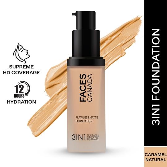 फेसेस कनाडा 3-इन-1 फ्लॉलेस मैट फाउंडेशन SPF 18 - 023 कैरमेल नेचुरल (30ml) के साथ रंगत को निखारें। इस हाइड्रेटिंग फाउंडेशन में एलोवेरा होता है जो पूरे दिन त्वचा को नमीयुक्त रखता है और विटामिन सी रंगत को निखारने के लिए होता है। फेसेस कनाडा लिक्विड फाउंडेशन न केवल दाग-धब्बों और काले घेरों को छुपाता है, बल्कि SPF 30 के साथ त्वचा को सूरज की किरणों से होने वाले नुकसान से भी बचाता है। साथ ही, इसमें हल्का फ़ॉर्मूला है जो आसानी से मिल जाता है और प्राकृतिक, मैट फ़िनिश प्रदान करता है।