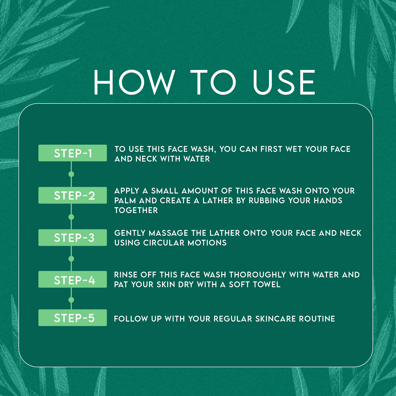 यह फेस वॉश तैलीय, मिश्रित और मुंहासे वाली त्वचा के लिए एकदम सही है। टी-ट्री के गहरे क्लींजिंग प्रभाव, नींबू के मैटिफाइंग एस्ट्रिंजेंट गुणों और विटामिन ई के क्लींजिंग गुणों के साथ, यह फेस वॉश तेल के जमाव को साफ करता है, बंद रोमछिद्रों को साफ करता है, अधिक तेल बनने से रोकता है और त्वचा को चिकना और मुलायम बनाए रखता है।