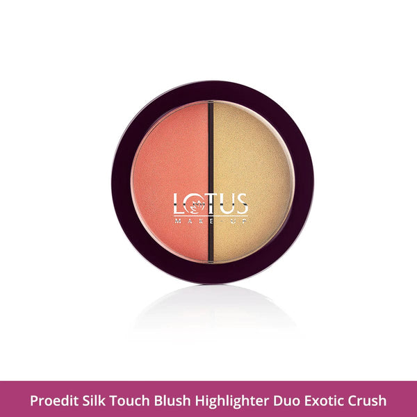 लोटस मेक-अप प्रोएडिट सिल्क टच ब्लश हाइलाइटर डुओ माइक्रो फाइन पिगमेंट के साथ आपको लंबे समय तक चलने वाला गहरा रंग प्रदान करेगा। सुपर-फाइन पाउडर आपकी त्वचा पर आसानी से पिघल जाता है और आपके गालों पर रंग का एक बेहतरीन फ्लश देता है। ये आपके चेहरे पर एक बेहतरीन फ्रेश लुक और फील देने के लिए ज़रूरी चीज़ें हैं।