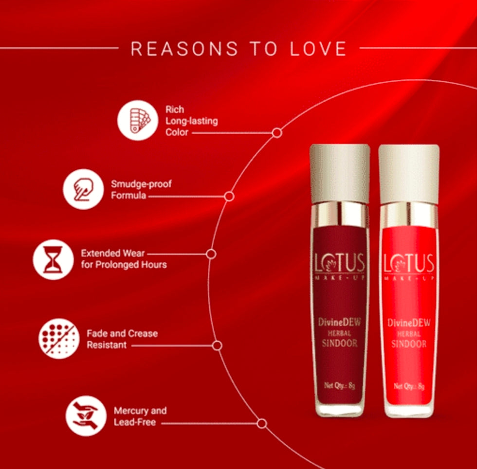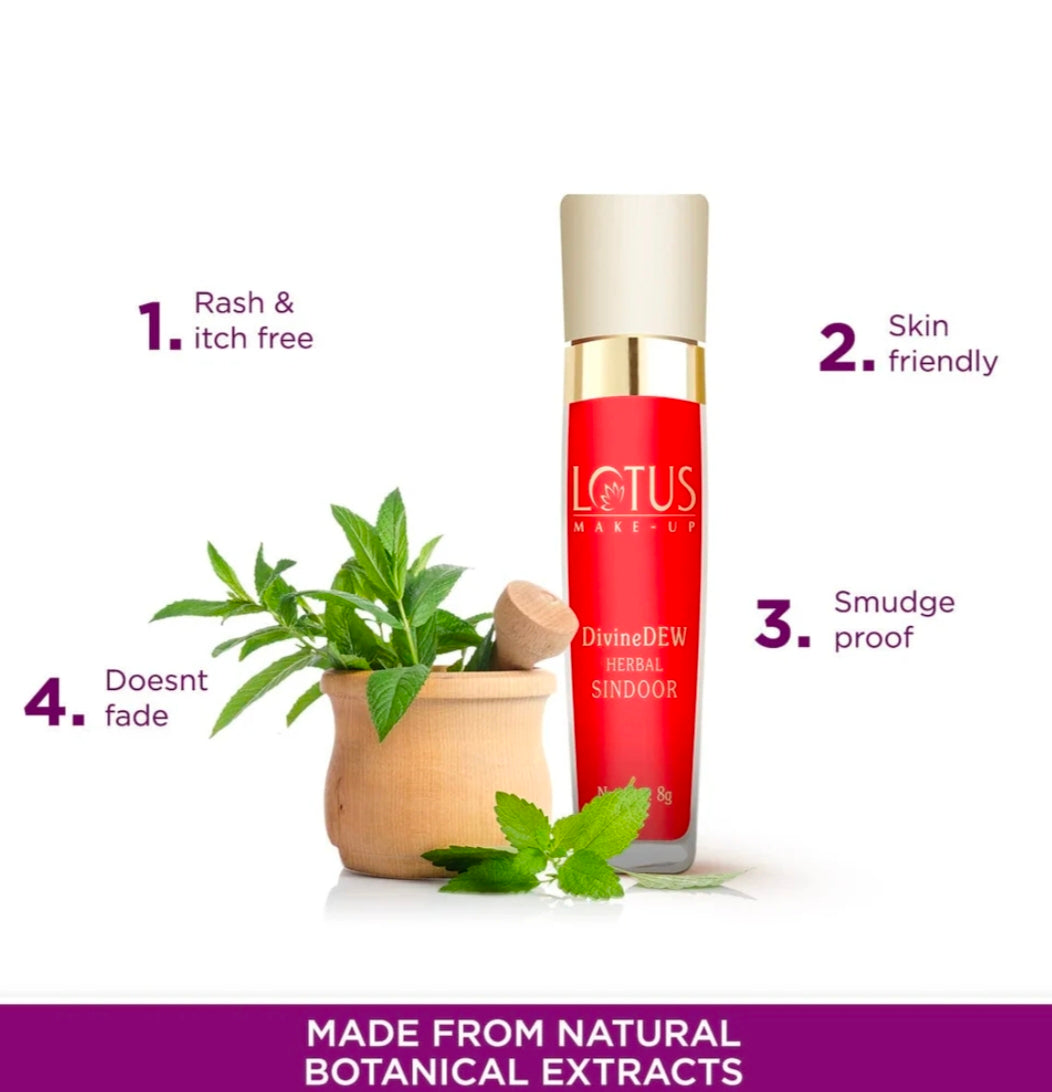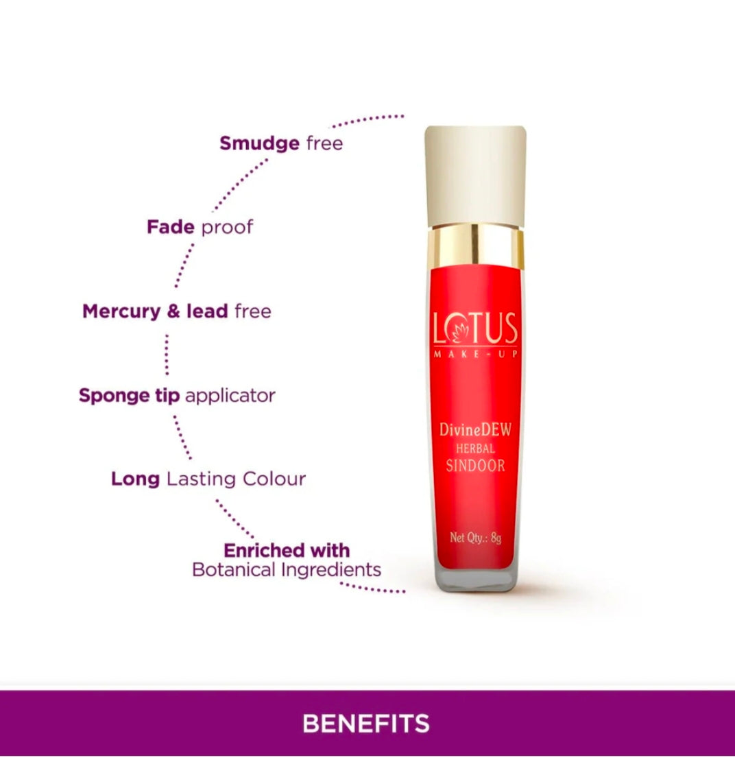 Lotus divine dew Herbal sindoor is mercury and lead free which will not damage hair and skin. The water resistant property make it stay for long, giving that flawless finish without smudging. Easy to use sponge applicator provide convenience of application without any spillage.