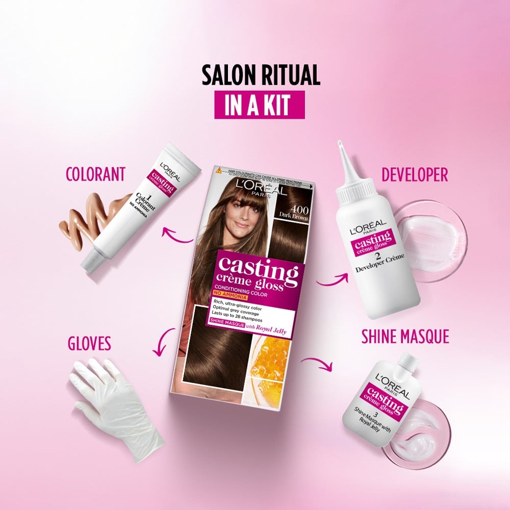लोरियल कास्टिंग क्रीम ग्लॉस नो अमोनिया 400 डार्ल ब्राउन 87.5G+72ML