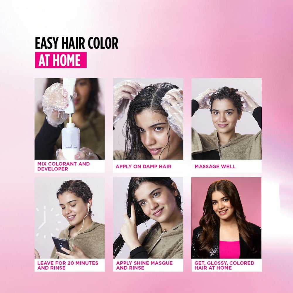 गैर-अमोनिया हेयर कलरेंट दृश्यमान झिलमिलाते रंग चमकदार चमक और प्राकृतिक दिखने वाला रंग देता है प्रभावी रूप से भूरे बालों को ढकता है