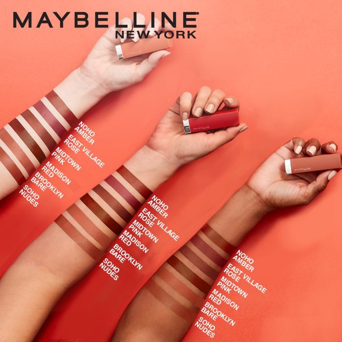 अब मेबेलिन न्यू यॉर्क के लिमिटेड एडिशन फेस्टिव कलेक्शन के साथ गर्मी बढ़ाएँ! 6 फील-गुड मैट गर्म रंगों में, त्यौहारों के मौसम में भारतीय त्वचा के रंग को निखारने के लिए डिज़ाइन किए गए हैं। इन लिपस्टिक में पूरे दिन आराम के लिए क्रीमी मैट टेक्सचर है!