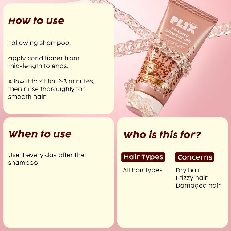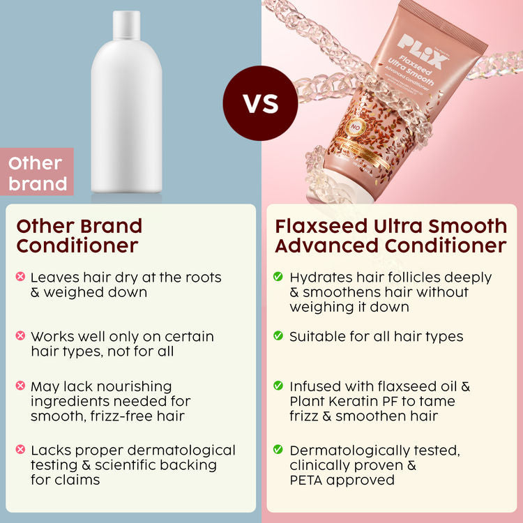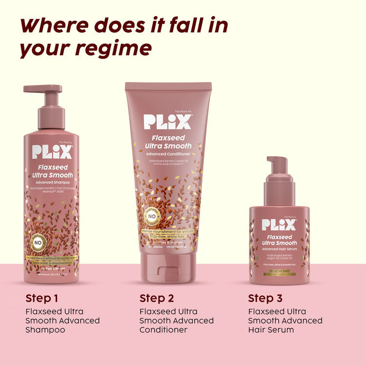 Here’s your go-to daily conditioner for silky, smooth, and naturally shiny hair, without weighing it down. The Flaxseed Ultrasmooth Advanced Conditioner is specially designed to tame frizz, smooth rough cuticles, and keep hair light, soft, and manageable after every wash. Powered by Plant Keratin PF, it penetrates deep into the hair shaft to smooth and strengthen from within. Argan Oil, rich in vitamin E and antioxidants, deeply hydrates each strand, enhancing softness and luster without any heaviness. Flaxseed Oil, packed with omega-3s and vitamin E, nourishes follicles and helps reduce breakage while boosting shine. The Amino Acid Complex ‘17’ delivers essential nutrients for overall hair health, and Hydrolysed Keratin mimics your hair’s natural keratin to restore strength and resilience. Sulphate-free and safe for daily use, this conditioner leaves your hair looking healthier, feeling softer, and shining brighter, day after day.