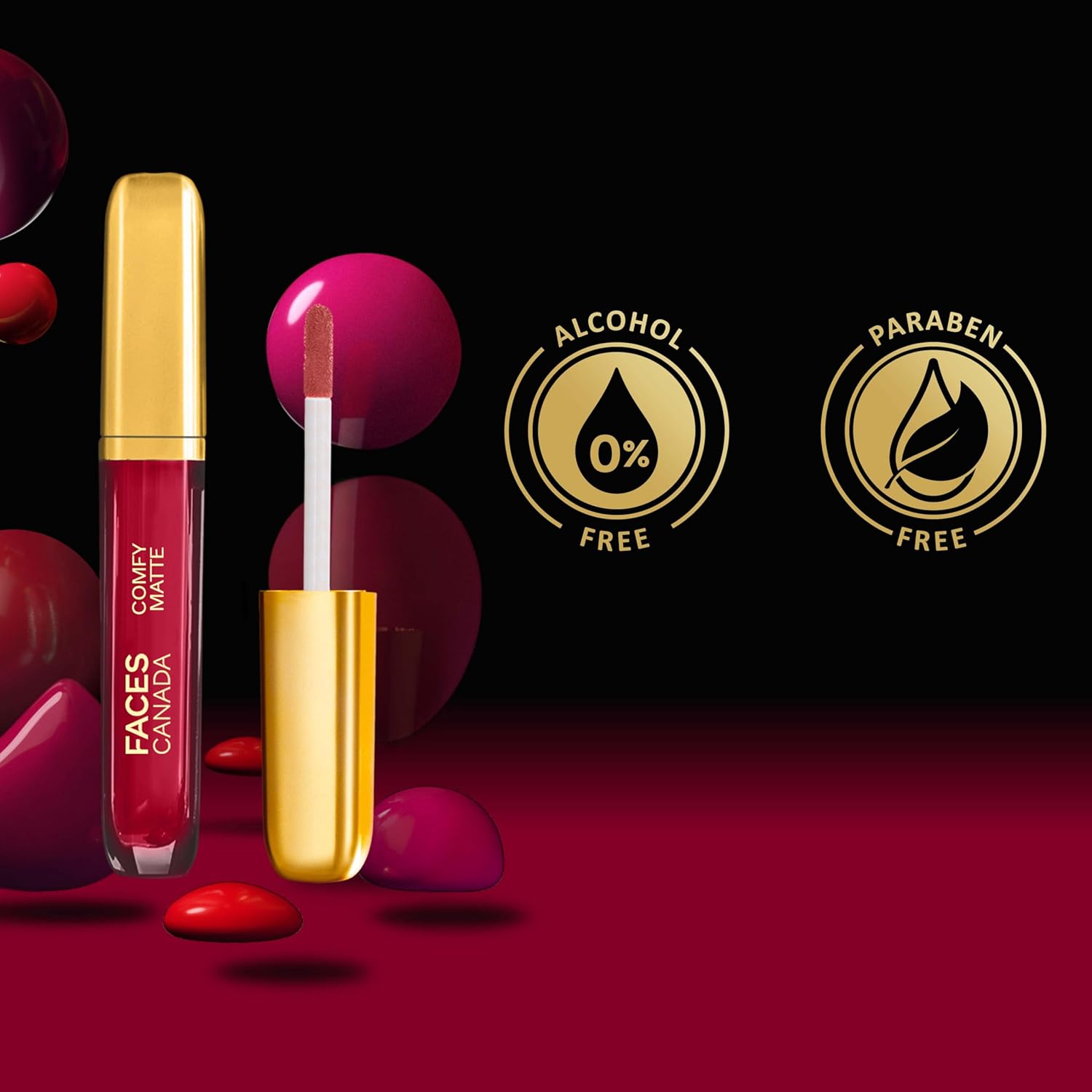 Introducing the FACESCANADA Comfy Matte Lip Colour, a revolutionary addition to your makeup arsenal that combines long-lasting wear with exceptional comfort. This liquid lipstick promises an intense matte finish that stays put for up to 10 hours, ensuring your lips remain vibrant throughout the day. What sets it apart is its formulation enriched with lip-loving ingredients like Almond Oil and Vitamin E. These elements not only nourish and hydrate your lips but also prevent them from drying out, maintaining a soft and supple texture. Designed for those who crave both durability and indulgence, the Comfy Matte Lip Colour delivers on its promise of intense color payoff without compromising on comfort. Its matte finish feels weightless and breathable, making it suitable for prolonged wear without causing discomfort. With a spectrum of 12 captivating shades, ranging from subtle neutrals to bold hues, there's a color for every mood and occasion. Each shade is carefully crafted to complement all skin tones, ensuring that every application leaves you with a flawless, head-turning pout. Moreover, this lipstick is more than just a cosmetic; it's a conscientious choice. Formulated without parabens, alcohol, or cruelty to animals, it embodies a commitment to quality and ethical beauty practices. Whether you're gearing up for a busy day at work or a glamorous evening out, the FACESCANADA Comfy Matte Lip Colour is your go-to companion. Discover the perfect blend of natural ingredients and long-lasting performance, encapsulated in a sleek tube that promises to be your new makeup favorite from the very first try. Treat your lips to an experience that's as comfortable as it is captivating.