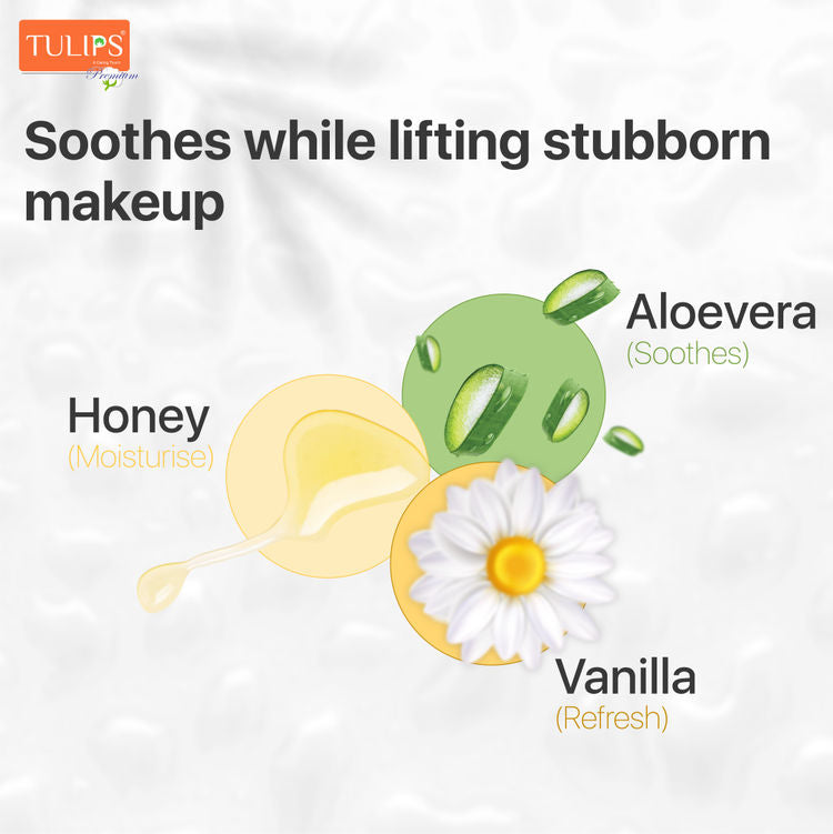 ट्यूलिप मेकअप रिमूवर वाइप्स बायोडिग्रेडेबल फ़ैब्रिक से बने हैं। ये वाइप्स आपकी त्वचा और पर्यावरण के लिए अच्छे होने के साथ-साथ सबसे कठिन वाटरप्रूफ मेकअप, गंदगी और अशुद्धियों को भी प्रभावी ढंग से हटाते हैं। माइसेलर वॉटर तकनीक से युक्त, ये कठोर रगड़ के बिना मेकअप को हटाते हैं, जिससे आपकी त्वचा ताज़ा, साफ और हाइड्रेटेड महसूस होती है। संवेदनशील त्वचा सहित सभी प्रकार की त्वचा के लिए उपयुक्त, ये वाइप्स त्वरित और पर्यावरण के प्रति जागरूक सफाई के लिए एकदम सही यात्रा-अनुकूल समाधान हैं।