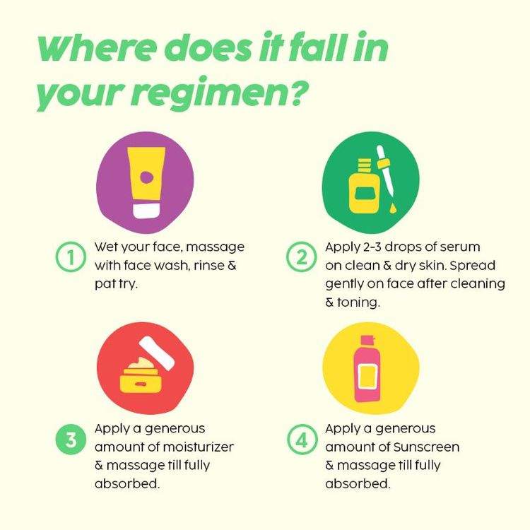 Start by using it in your P.M. regime for a week & thereafter use it daily in your A.M. & P.M. regime after cleansing & toning.
