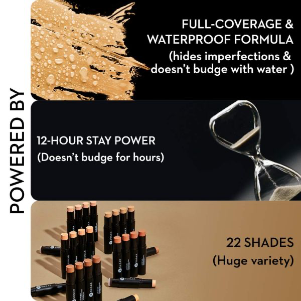 SUGAR Ace Of Face Foundation Stick के साथ एक आसान से स्टेप में अपनी खूबसूरत त्वचा को हकीकत में बदल दें। हल्का, क्रीमी और ब्लेंड करने में बेहद आसान, इसका लंबे समय तक चलने वाला फ़ॉर्मूला ऐसा कवरेज देता है जो न सिर्फ़ दिखने में बल्कि दूसरी त्वचा जैसा भी लगता है। यह आसान स्टिक बढ़े हुए रोमछिद्रों, महीन रेखाओं, काले घेरों, दाग-धब्बों और बहुत कुछ को धुंधला कर देता है‚Ķइसलिए आपके पास तस्वीर जैसी परफेक्ट त्वचा से कम कुछ भी दिखाने का कोई बहाना नहीं है। इस जादुई अद्भुत फ़ाउंडेशन स्टिक को अपने मेकअप बैग में हमेशा के लिए जगह देने के लिए तैयार हो जाइए और हर बार केकी दिखे बिना पूरी तरह से वाटरप्रूफ कवरेज पाएँ!