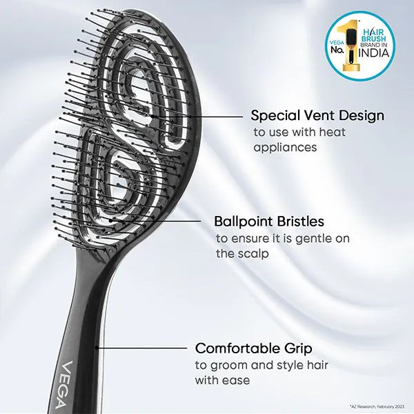 वेगा हेयर ब्रश से अपने बालों को हर दिन स्टाइल करें। हमारे हेयर ब्रश रेंज में पैडल, कुशन, फ्लैट, राउंड और कॉम्पैक्ट हेयर ब्रश शामिल हैं जो सभी लंबाई और बनावट के बालों को संवारने, आकार देने और सुलझाने के लिए डिज़ाइन किए गए हैं। बॉल टिप्ड ब्रिसल्स धीरे से स्कैल्प की मालिश करते हैं और उलझे हुए बालों को कम करते हैं ताकि आपको रेशमी चिकने बाल या उछालदार लहरें मिलें। हर दिन एक नए लुक के लिए आज ही वेगा आज़माएँ।