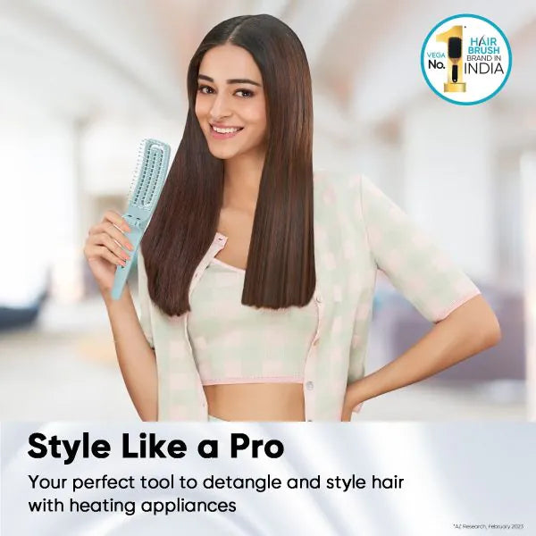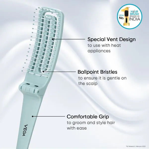 वेगा हेयर ब्रश से अपने बालों को हर दिन स्टाइल करें। हमारे हेयर ब्रश रेंज में पैडल, कुशन, फ्लैट, राउंड और कॉम्पैक्ट हेयर ब्रश शामिल हैं जो सभी लंबाई और बनावट के बालों को संवारने, आकार देने और सुलझाने के लिए डिज़ाइन किए गए हैं। उलझने को सुलझाने वाले ब्रिसल्स धीरे से स्कैल्प की मालिश करते हैं और उलझे हुए बालों को कम करके आपको रेशमी चिकने बाल या उछालदार लहरें देते हैं। हर दिन एक नए लुक के लिए आज ही वेगा आज़माएँ।