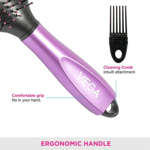 यह वेगा फ्लैट हेयर ब्रश बालों को एक समान बनावट और वॉल्यूम देने के लिए दैनिक स्टाइलिंग के लिए सबसे अच्छा है। इन ब्रश को बालों को चिकना करने, स्टाइल करने, उलझने को दूर करने और सही फिनिशिंग टच देने के लिए बालों को पकड़ और नियंत्रण प्रदान करने के लिए डिज़ाइन किया गया है। यह छोटे से मध्यम लंबाई के बालों के लिए सबसे उपयुक्त है। यह कॉम्पैक्ट है और इसे पुरुष और महिला दोनों ही आसानी से और जल्दी ब्रश करने के अनुभव के लिए इस्तेमाल कर सकते हैं। ठाठ काले और लैवेंडर रंग का शरीर हेयर ब्रश को बहुत ही आकर्षक लुक देता है।