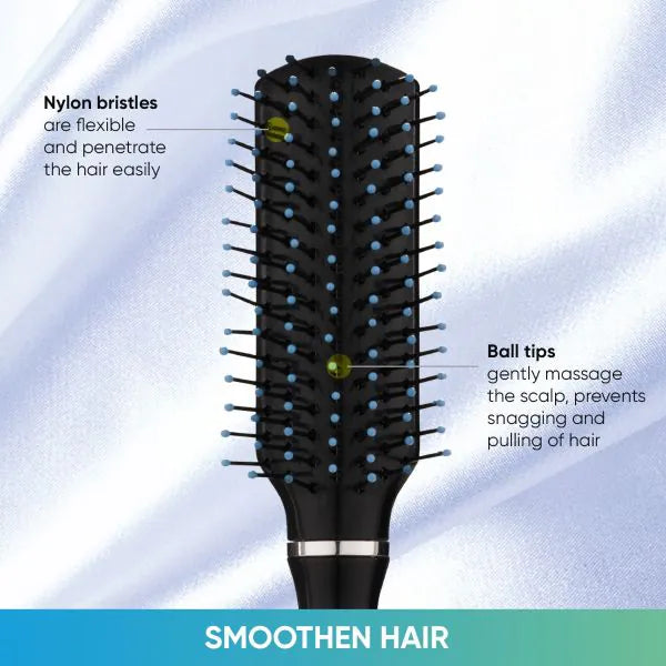 बालों के लिए वेगा फ्लैट ब्रश सभी बालों की लंबाई और बनावट को चिकना करता है ताकि आपकी दैनिक हेयर स्टाइलिंग की ज़रूरतों को पूरा किया जा सके। वेगा फ्लैट ब्रश के साथ बालों में आसानी से वॉल्यूम जोड़ें जिसमें बॉल टिप्ड नायलॉन ब्रिसल्स हैं जो धीरे से स्कैल्प की मालिश करते हैं, उलझन को सुलझाते हैं और जड़ों को ऊपर उठाते हैं। हेयर ब्रश सभी प्रकार के बालों के लिए उपयुक्त हैं।