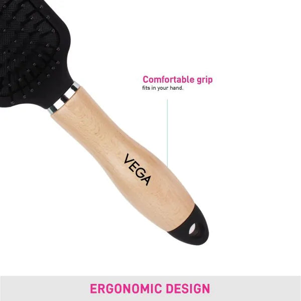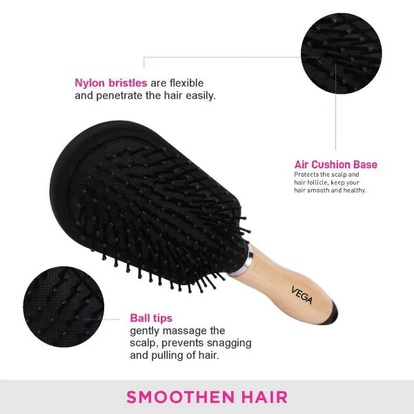 यह VEGA कुशन ब्रश (H3-CB) अंडाकार आकार में आता है और आपके बालों को संवारने, सीधा करने, चिकना करने और चमक लाने के लिए एकदम सही है। इसमें नायलॉन के ब्रिसल्स हैं, जो स्थिर बॉल एंड्स के साथ हैं जो आसानी से बालों को उत्तेजित करते हैं, स्कैल्प की मालिश करते हैं और उलझने और उलझने को कम करने में भी मदद करते हैं। आरामदायक पकड़ के साथ एर्गोनॉमिक रूप से डिज़ाइन किया गया है और यह छोटे से लेकर मध्यम लंबाई तक के बालों के लिए उपयुक्त है।