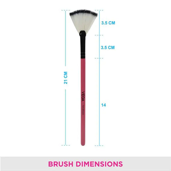 वेगा फैन ब्रश का इस्तेमाल आंखों, नाक और गालों की सिलवटों से अतिरिक्त मेकअप पाउडर को हटाने के लिए किया जा सकता है। इसे मेकअप के अंत में हाइलाइटर के रूप में भी इस्तेमाल किया जा सकता है ताकि एक शानदार टच दिया जा सके। वेगा द्वारा काले फेरूल के साथ आकर्षक गुलाबी रंग में यह प्रीमियम मेकअप ब्रश अल्ट्रा-सॉफ्ट बालों से बनाया गया है जो अविश्वसनीय स्पर्श और एहसास प्रदान करता है।