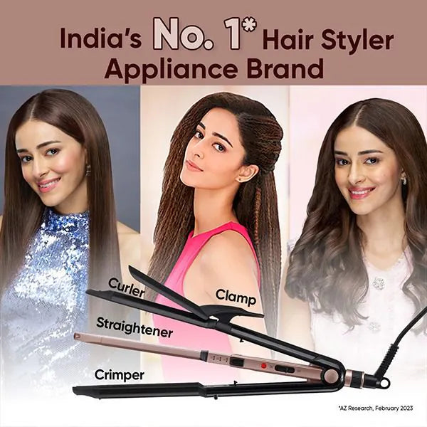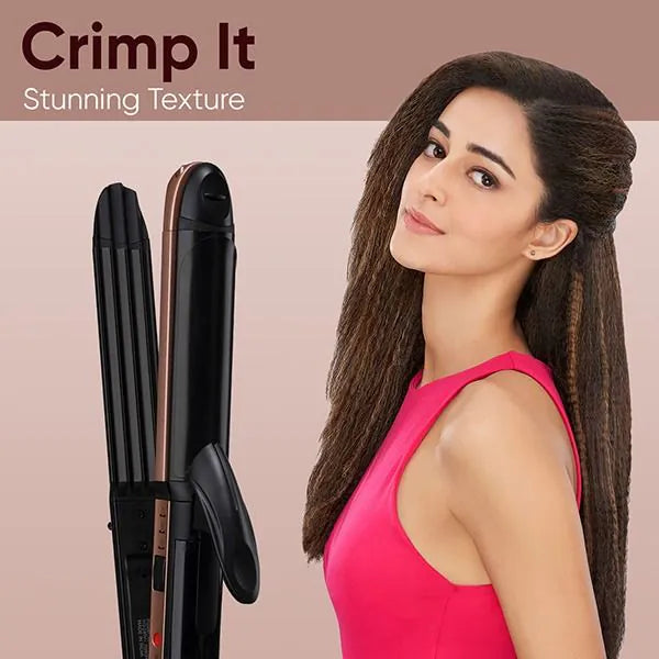 - 3 Appliances in 1: The hair styler features straightener plates, crimper plates and a curling barrel in one compact appliance to create straight hair, crimped hair and curls.