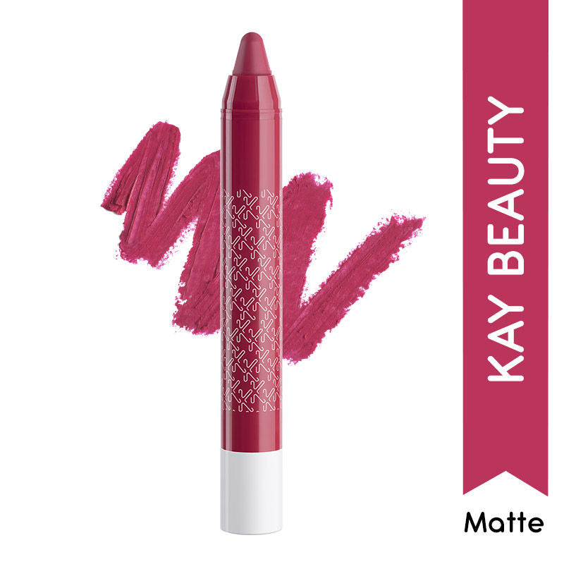Kay Beauty Matteinee lip crayon combines unrivalled 18 hour long stay and extreme matte finish with ultra comfort. This smudge proof lip crayon delivers a high colour payoff while feeling weightless on the lips making your lips feel feathery soft and light. The overachieving lip crayon is 100% waterproof & sweatproof so your lip hue stays intact when the sun goes up. Enriched with the miraculous Marula & good for you Chamomile oil, the lip crayon ensure to keep your lips well hydrated and nourished while you are looking glam. Housed in Kay's classic monogram, it comes in 24 attractive shades from barely there nudes to high drama hues, specially curated for all Indian beauties.
