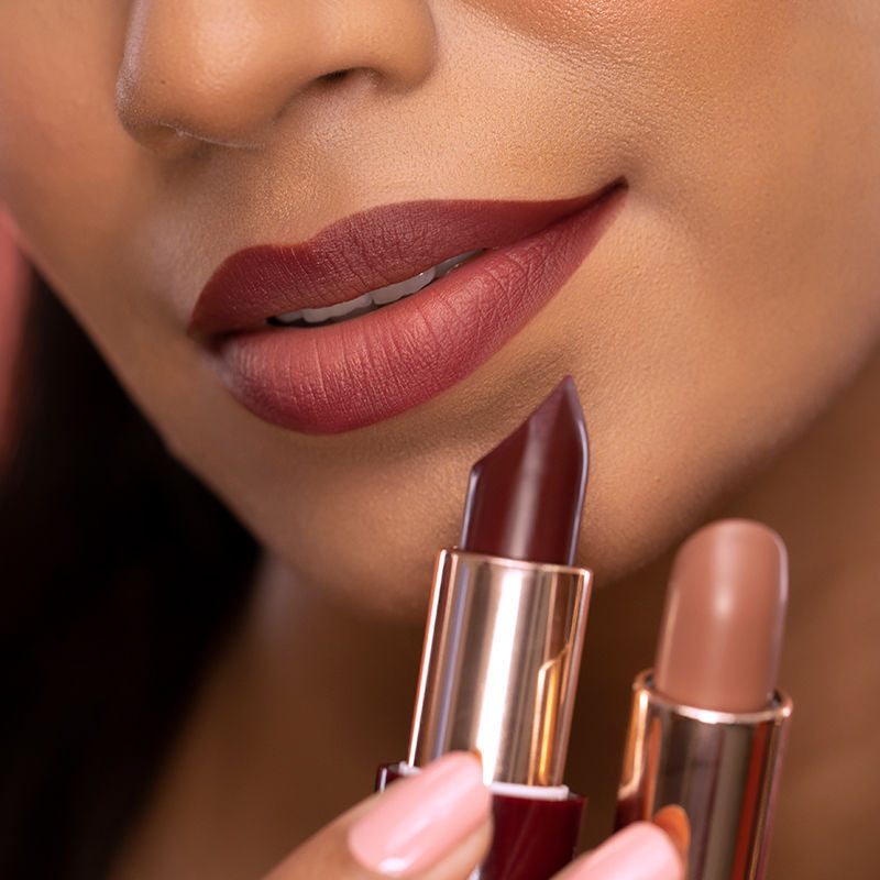 Every girl needs a trusty matte lipstick. One that doesn't smudge, budge or nudge from her lips. The Kay Beauty Matte Drama Lipstick is here to give you luxurious matte lips and unleash the power of long stay.Its velvety luxe texture is what makes it the most coveted of all matte lipsticks, and spells pure opulence. Just one stroke is all it takes to cover your lips with high impact colour. The iconic weightless formula feels feathery light on the lips and is comfortable for all day wear. Our care ingredients containing grapeseed oil and red raspberryensure that the formula moisturizes your lips while protecting it from sun damage or any blue light. You can take your pick from 24 shades ranging from pinks and nudes to mauves and plums, that will flatter all Indian skin tones. It’s time to pucker up!