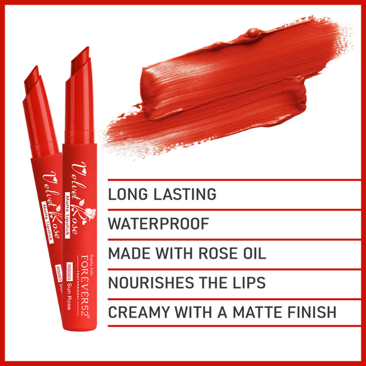 First lipstick of its kind, Daily Life Forever52 Velvet Rose Matte Lipstick is enriched with rose oil that nourishes and adds a tinge of color to the lips. Its unique formulation combines the intensity of matte and comfort of a cream, offering an excellent color pay off for long hours. The precise tip of this lipstick provides the best application. This waterproof Velvet Rose Matte Collection consists of 12 nude to deep shades, all with different rose oil essentials and fragrances. It gives amazing color impact that lasts for long and is waterproof.
