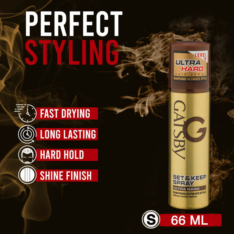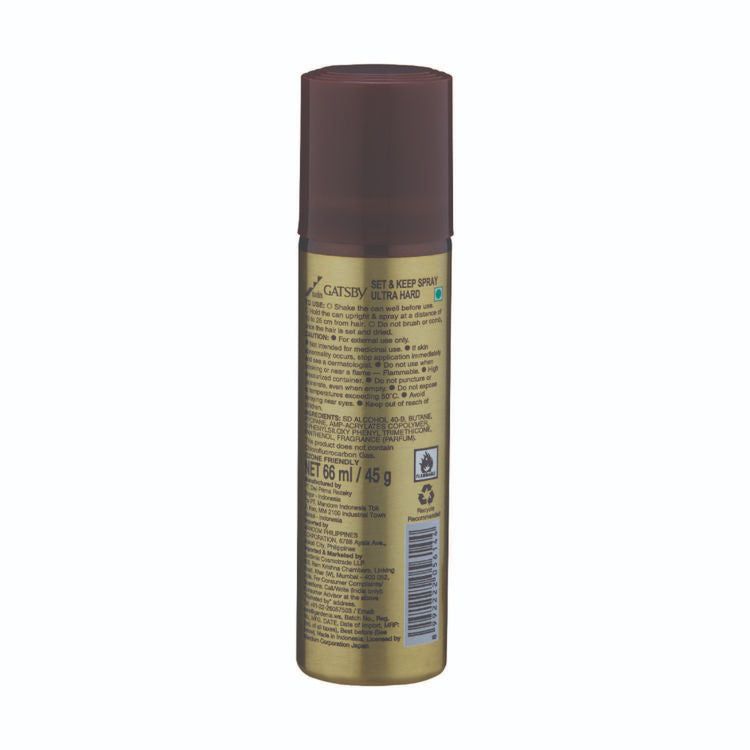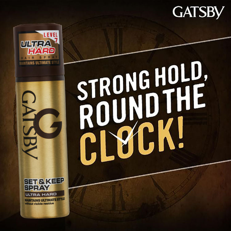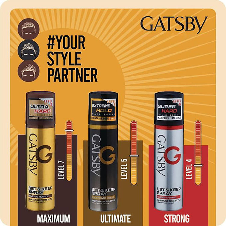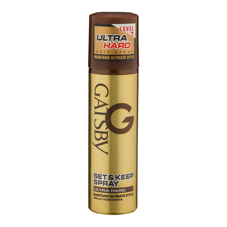 Experience timeless style with Gatsby Japan's No. 1 Set & Keep Hair Spray - Ultra Hard. Elevate your hair game with the spray, the ultimate solution for achieving a signature look that stands the test of time. This canister packs a powerful punch, providing you with formidable hold while maintaining the natural freedom and movement of your hair.
