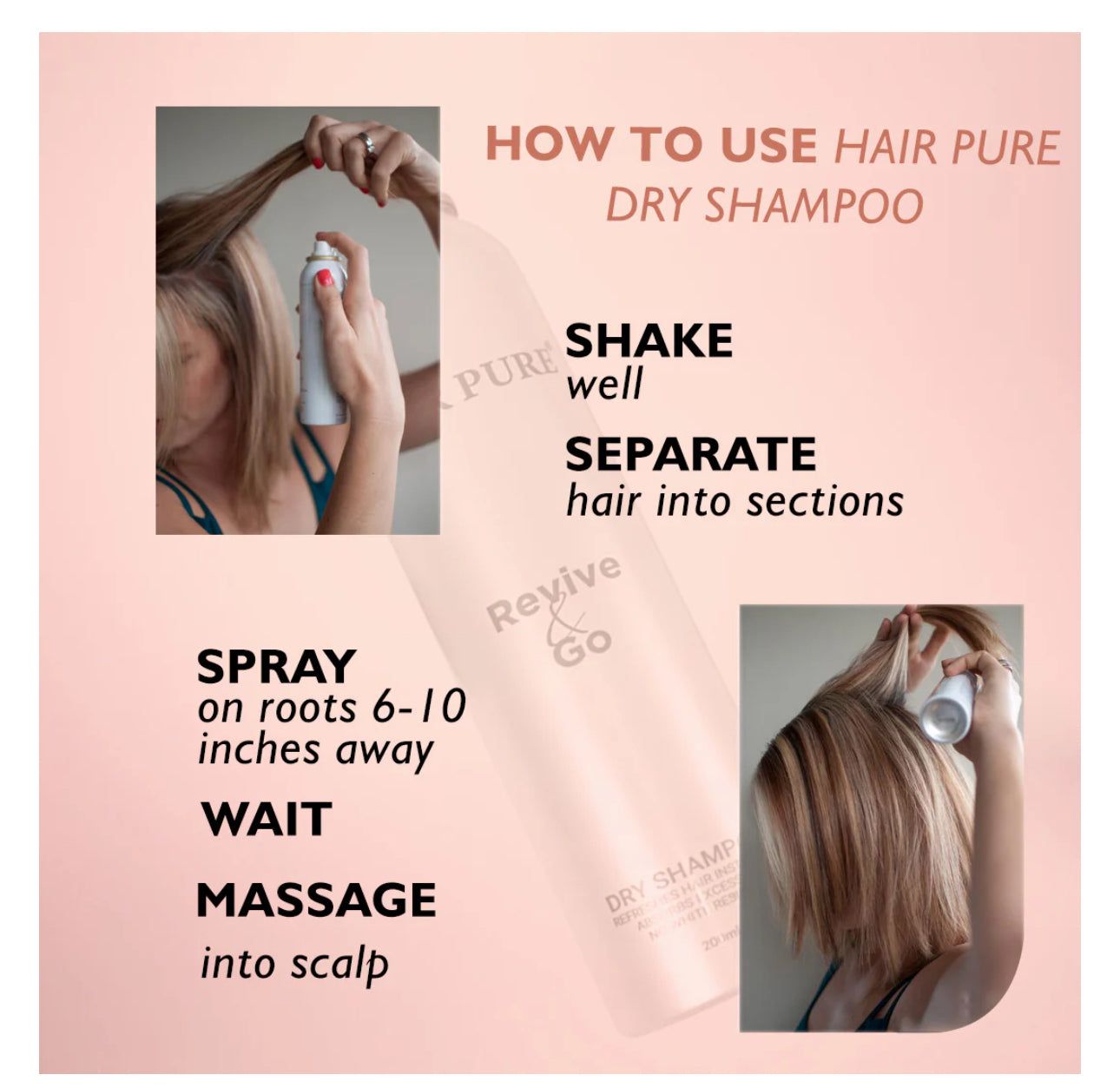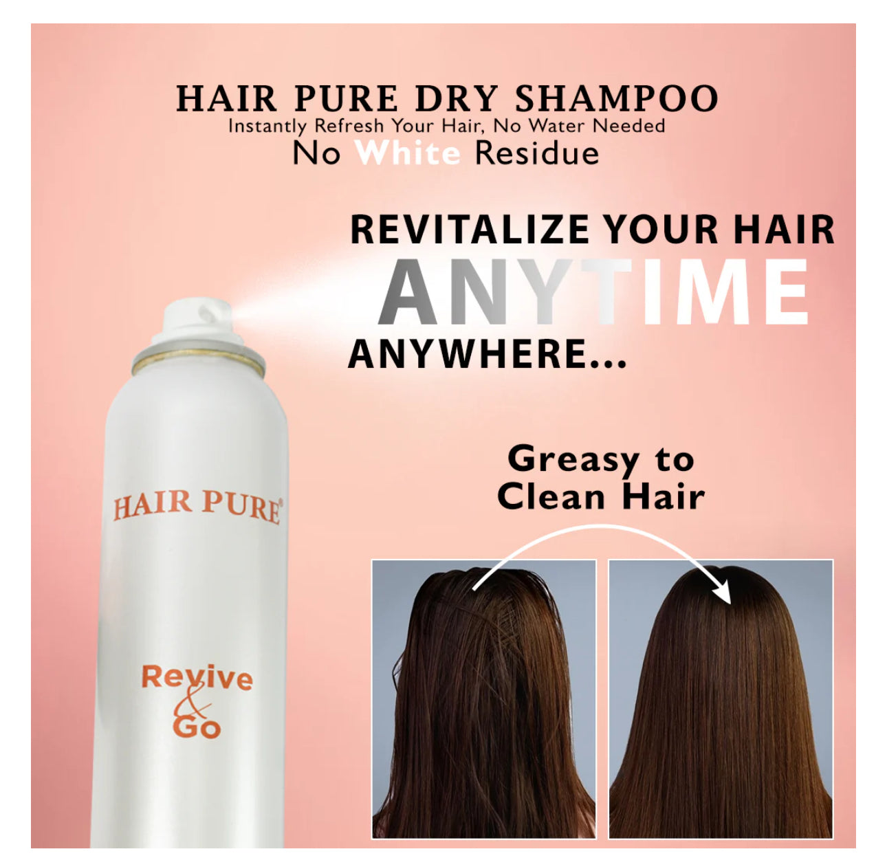 Refresh your hair instantly with Hair Pure Revive & Go Dry Shampoo. Specially designed for both