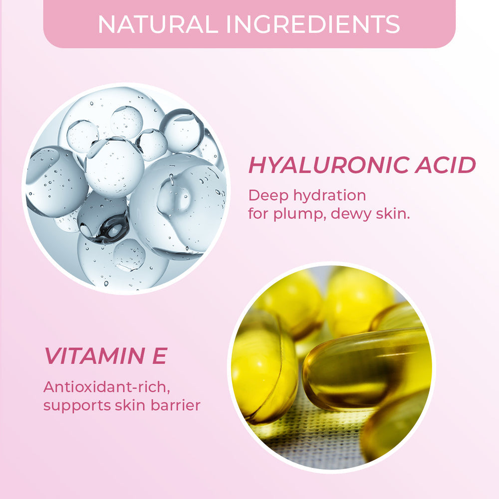 Hyaluronic Acid: Deep hydration for plump, dewy skin.