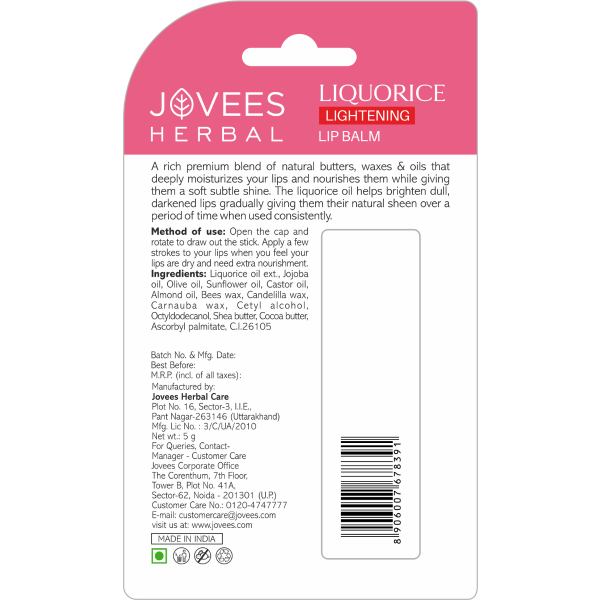A rich premium blend of natural butters, waxes & oils that deeply moisturizes your lips and nourishes them while giving them a soft subtle shine. The liquorice oil helps brighten dull, darkened lips gradually giving them their natural sheen over a period of time when used consistently.