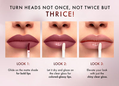 - Use clear gloss end of the liquid lip to apply over the colour to achieve the final look.