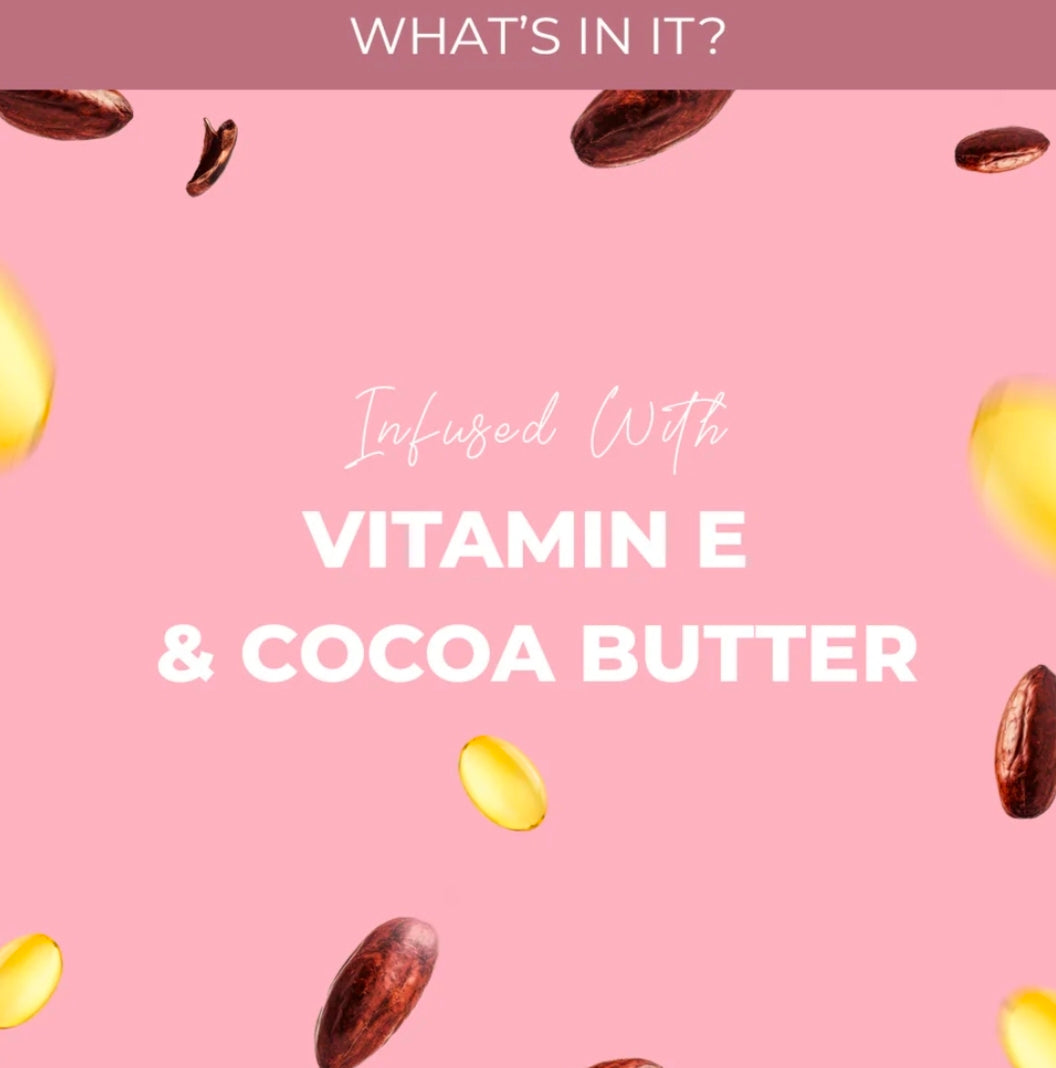 - Infused with nourishing ingredients like cocoa butter and vitamin E