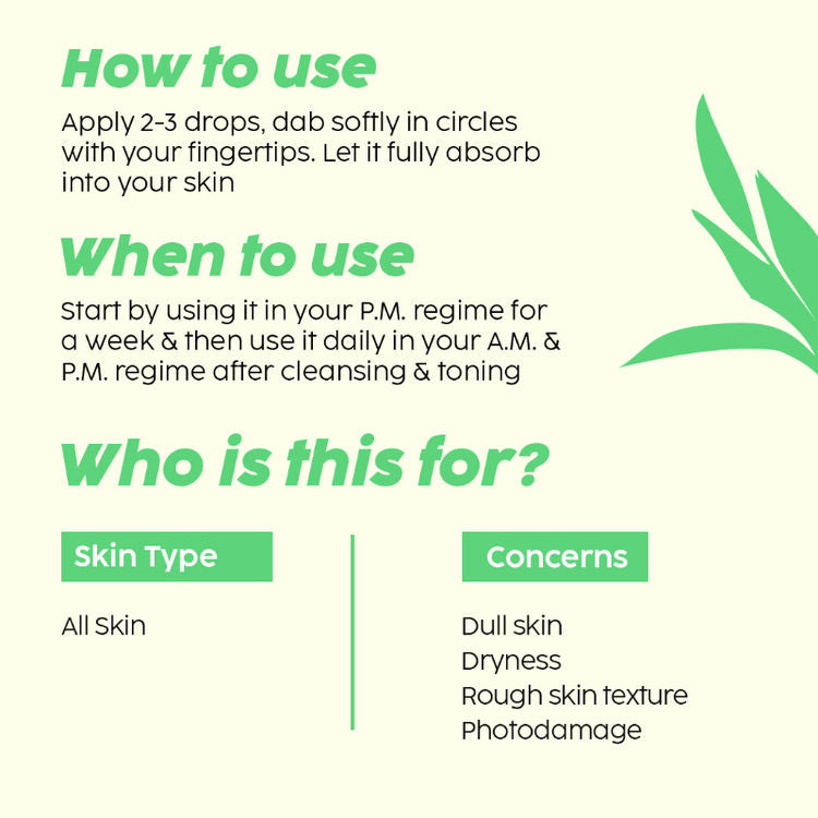 - Apply 2 to 3 drops of serum to clean, dry skin, and dab with fingertips in a circular motion and spread it all over your face.