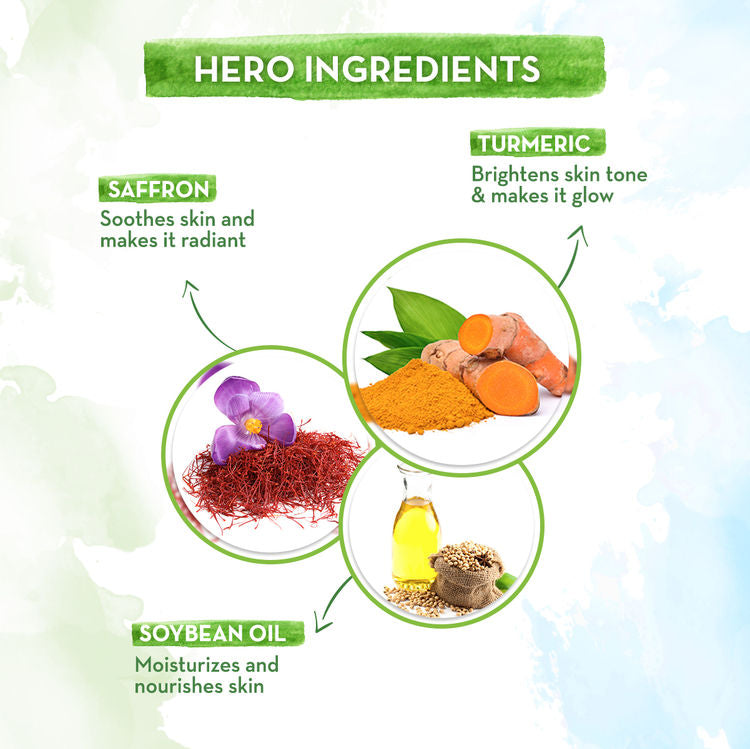 - Brightens and Makes Skin Glow: enriched with turmeric and saffron, this moisturizer protects the skin from sun damage, brightens skin tone and gives it natural radiance.