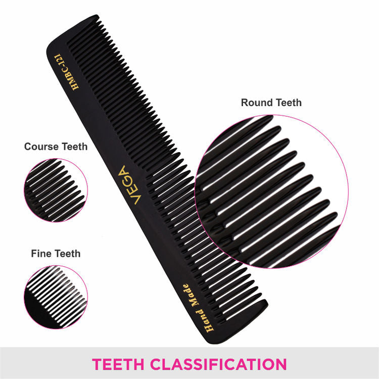 Vega Graduated Dressing Comb is made from cellulose acetate which does not create static in hair due to its non-petroleum based material, derived from natural plants. It has?smooth rounded teeth which do not hurt the scalp while combing and helps reducing hair fall. The smooth rounded teeth do not break while grooming, are gentle on the scalp and ideal for sensitive skin.