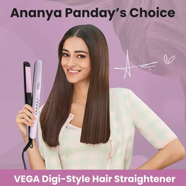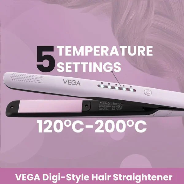 VEGA Digi-Style Hair Straightener is your perfect hair straightening tool for achieving straight and sleek hairstyles within a few minutes. The hair straightener let’s you flaunt stylishly-straight hair, thanks to its Ceramic Coated Plates that offer even heat distribution, 5 Temperature Control Settings for effortless hair styling of all hair types and Easy Lock System to store the hair straightener easily. Now, ace up your hairstyling game quick and easy with your partner in style, beauty and care by your side!